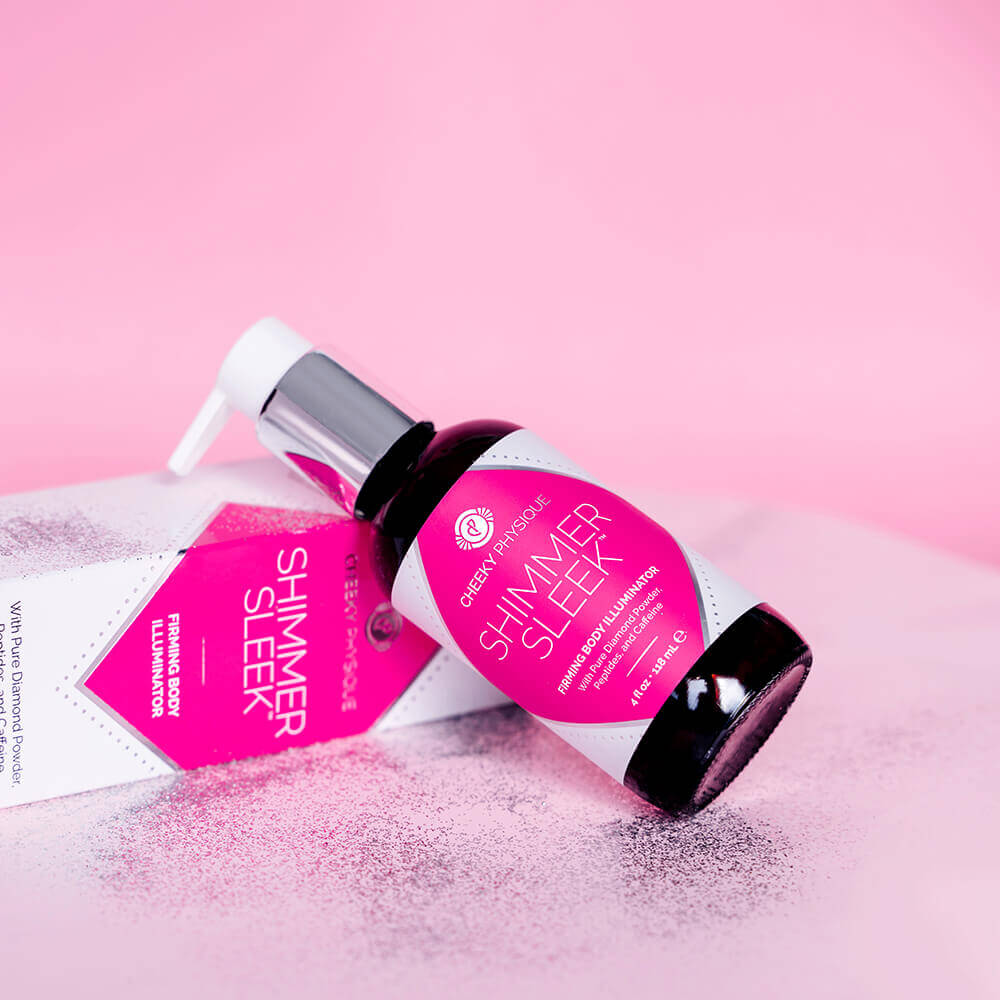 For the perfect finishing touch, give your skin a gorgeous glow with Shimmer Sleek. This firming body illuminator blurs the look of imperfections (like dullness, dry skin, and cellulite) while its subtle shimmer formula flatters all skin tones with a luminous, airbrushed-like finish.